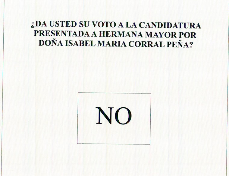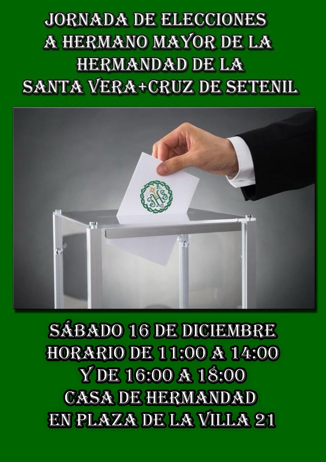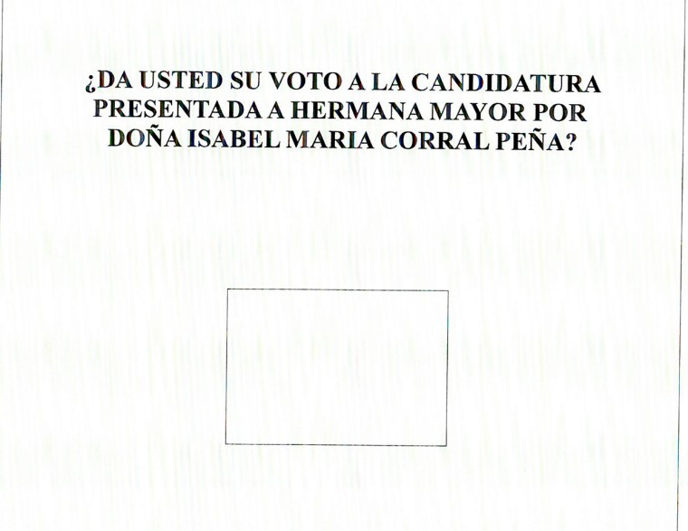 Ha sido convocado Cabildo General de Elecciones a Hermana Mayor de nuestra Hermandad para el próximo sábado 16 de diciembre de 2023 en horario de 11:00 a 14:00 y de 16:00 a 18:00 horas, en la Casa de Hermandad de Plaza de la Villa, 21. Están convocados 883 herman@s incluidos en el listado del censo aprobado por el Obispado de Asidonia-Jerez. Animamos a todos los que tienen derecho a voto a que participen en este Cabildo de Elecciones, autorizado por la Delegación de Hermandades y Cofradías del Obispado de Asidonia-Jerez, sobre la candidatura de Isabel María Corral Peña como Hermana Mayor.